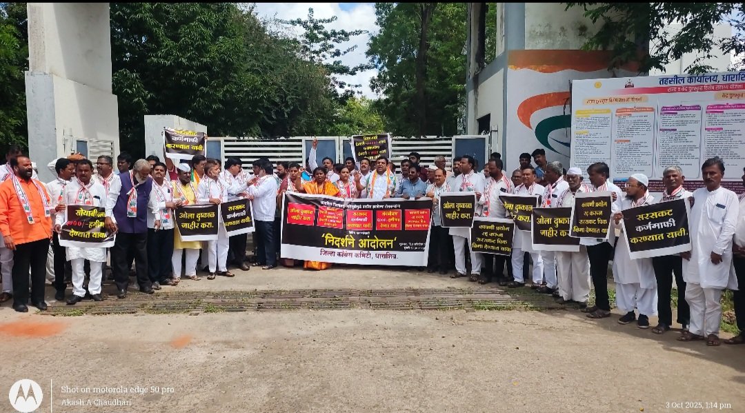 उडीद काढणीनंतर ऑगस्ट व सप्टेंबर या महिन्यांमध्ये ज्या शेतकऱ्यांच्या कांदा पिकांची लागवड करुन नुकसान झालेल्या शेतकऱ्यांना उडीद व कांद्याची एकत्रित मदत देण्यात यावी. तसेच ऊस उत्पादक शेतकऱ्यांना विचारात न घेता १५ रुपये शेतकऱ्यांच्या ऊस बिलातून कपास करण्याचा निर्णय मागे घ्यावा आदी मागण्यासाठी हे आंदोलन करण्यात आले. यावेळी जिल्हा काँग्रेस कमिटीचे अध्यक्ष ऍड धीरज पाटील, जिल्हा मुख्य संघटक राजाभाऊ शेरखाने, प्रदेश सचिव पांडुरंग कुंभार, जिल्हा वरिष्ठ उपाध्यक्ष सय्यद खलील, उपाध्यक्ष प्रशांत पाटील, सयाजी देशमुख, प्रकाश चव्हाण, बालाजी बंडगर, विलास शाळू , शहराध्यक्ष अग्निवेश शिंदे, डी.सी.सी.बँकेचे संचालक मेहबूब पाशा पटेल, बाजार समितीचे संचालक उमेश राजेनिंबाळकर, परांडा तालुकाध्यक्ष हनुमंत वाघमोडे, लोहारा तालुकाध्यक्ष शामसुंदर तोरकडे, ओबीसी विभागाचे जिल्हाध्यक्ष धनंजय राऊत, अल्पसंख्याक विभाग जिल्हाध्यक्ष आयुब पठाण, जिल्हा सरचिटणीस जावेद काझी, अशोक बनसोडे, सरफराज काझी, सुरेंद्र पाटील, अशोक शेळके, अमोल कुतवळ, युवक काँग्रेसचे धवलसिंह लावंड, मोइज सय्यद, कफील सय्यद, महिला जिल्हा कार्याध्यक्ष तनुजा हेड्डा, शीलाताई उंबरे, अंजली ढवळे, प्रभाकर लोंढे, मौलाना शौकत सय्यद, संजय देशमुख, अभिमान पेठे, समियोद्दीन काझी, अमोल पाटील, सिराज मोगल, बाबा घुटे, कालिदास खैरे, राजेश शिंदे, मुहिब शेख, बसवराज पाटील, सुधीर गव्हाणे, सलमान शेख, प्रशांत शिंदे, प्रदीप गवारे, संतोष जगताप यांच्यासह शेकडो कार्यकर्ते सहभागी झाले होते.