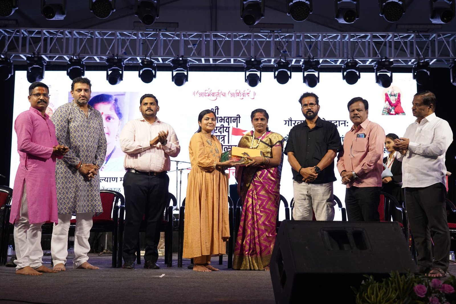 कार्यक्रमाची सुरुवात तहसीलदार तथा मंदिर संस्थानचे विश्वस्त अरविंद बोळंगे यांच्या हस्ते दीपप्रज्वलनाने झाली. यावेळी स्त्रीशक्तीचा गौरव म्हणून सेंद्रिय शेतीच्या क्षेत्रात उल्लेखनीय कार्य करणाऱ्या लक्ष्मी मोरे यांचा सन्मान करण्यात आला. धाराशिव नगरपरिषदेच्या मुख्याधिकारी निता अंधारे यांच्या हस्ते त्यांना श्री तुळजाभवानी देवींची प्रतिमा, कवड्याची माळ, महावस्त्र व अकरा हजार रुपयांचा धनादेश प्रदान करण्यात आला.